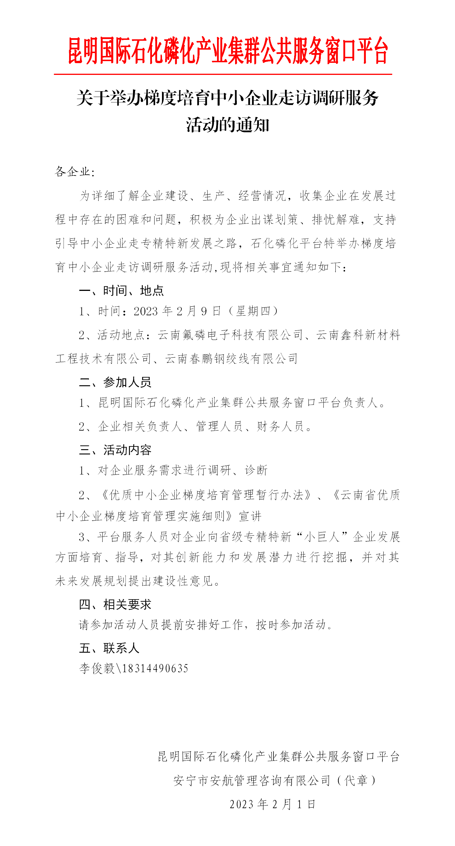 關(guān)于舉辦梯度培育中小企業(yè)走訪調(diào)研服務(wù) 活動的通知