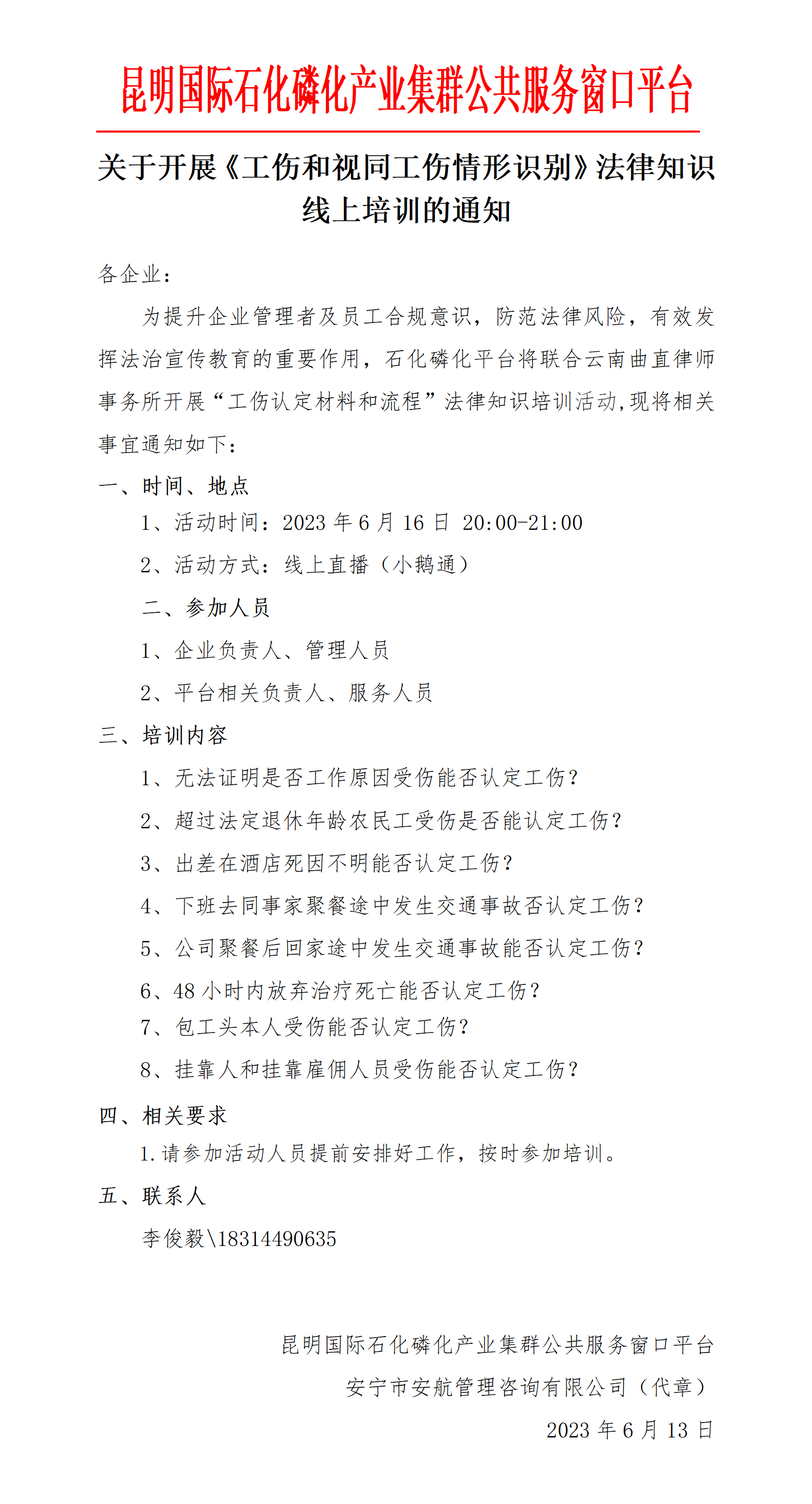 關(guān)于開展《工傷和視同工傷情形識別》法律知識線上培訓(xùn)的通知