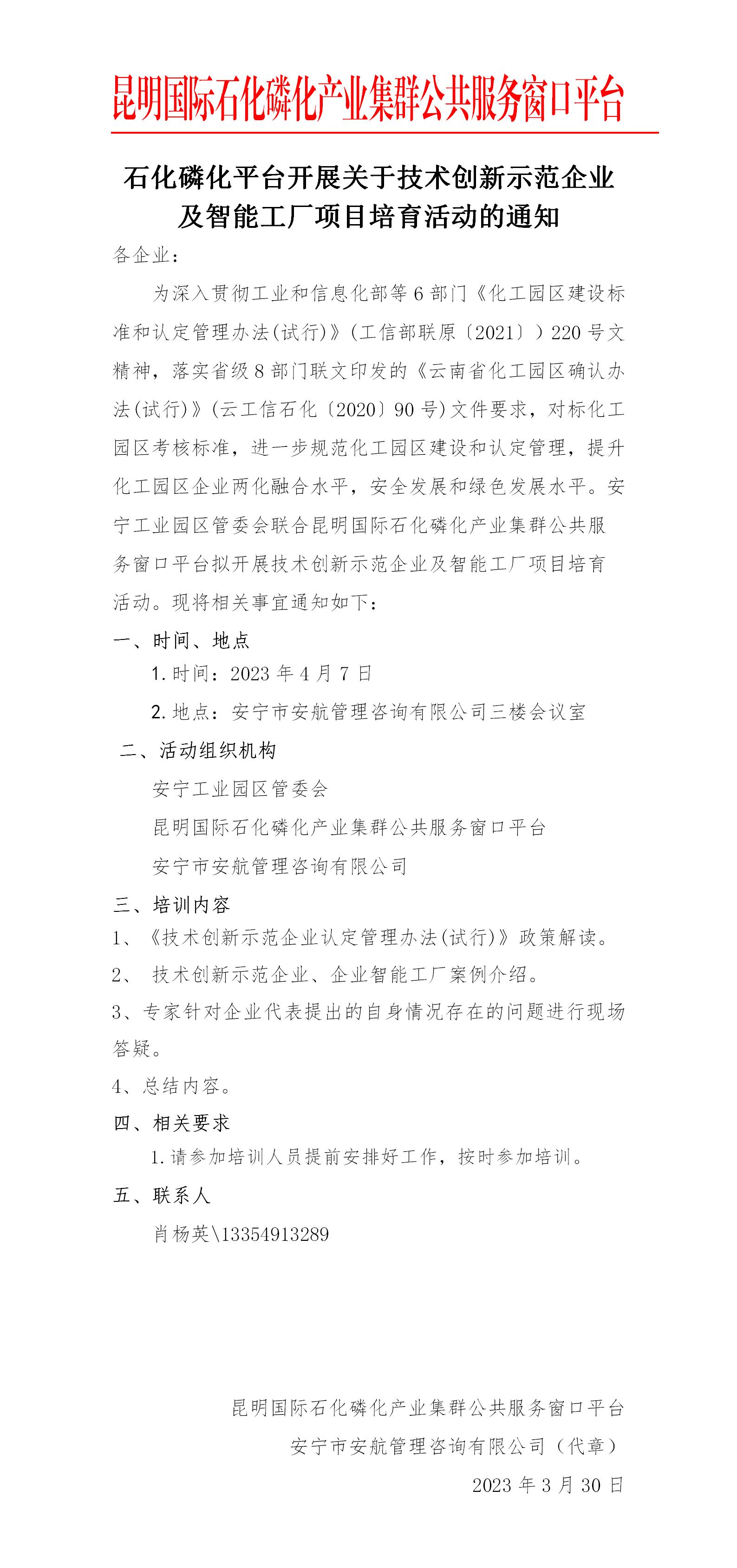開展關(guān)于技術(shù)創(chuàng)新示范企業(yè)及智能工廠項目培育活動的通知