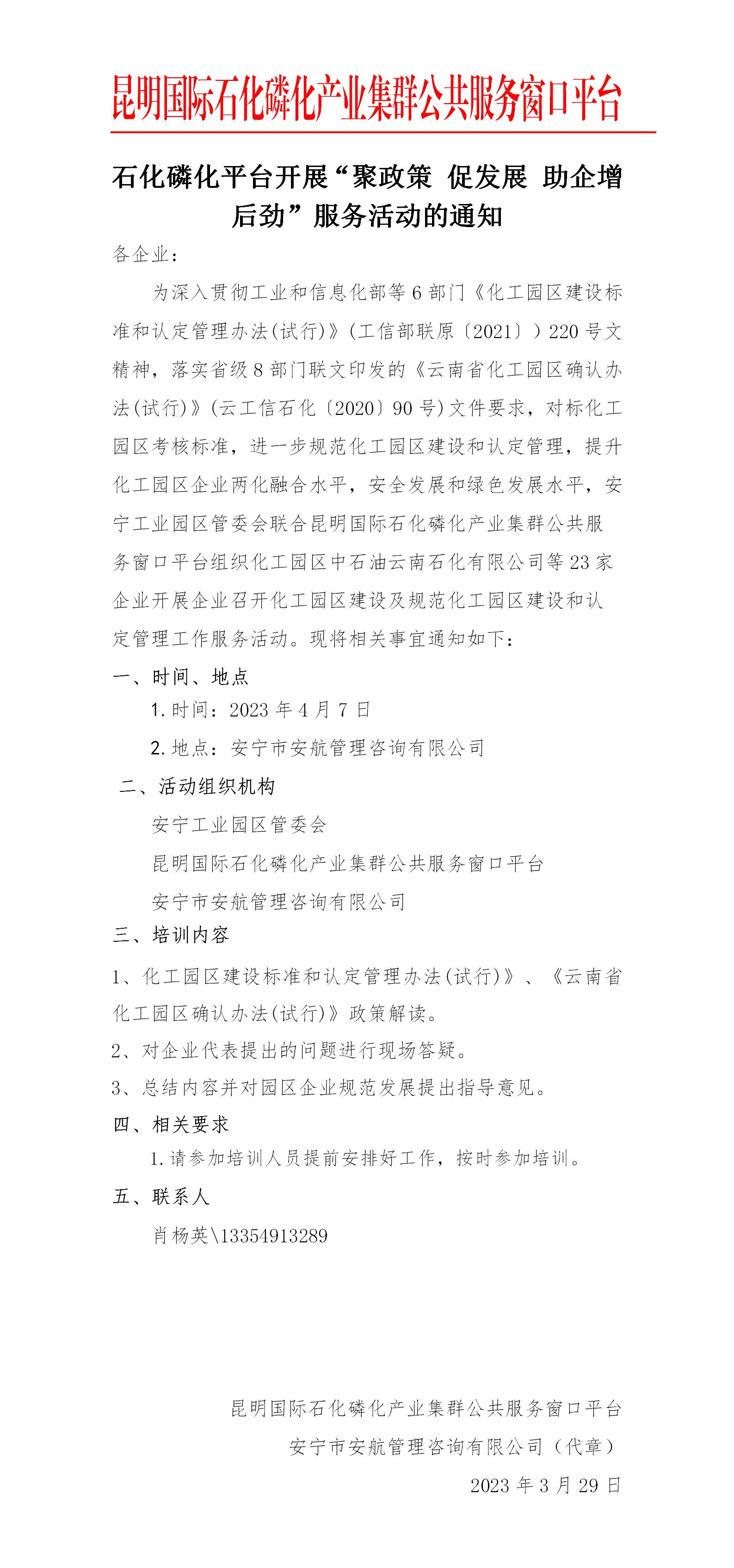 石化磷化平臺開展“聚政策 促發(fā)展 助企增后勁”服務(wù)活動的通知