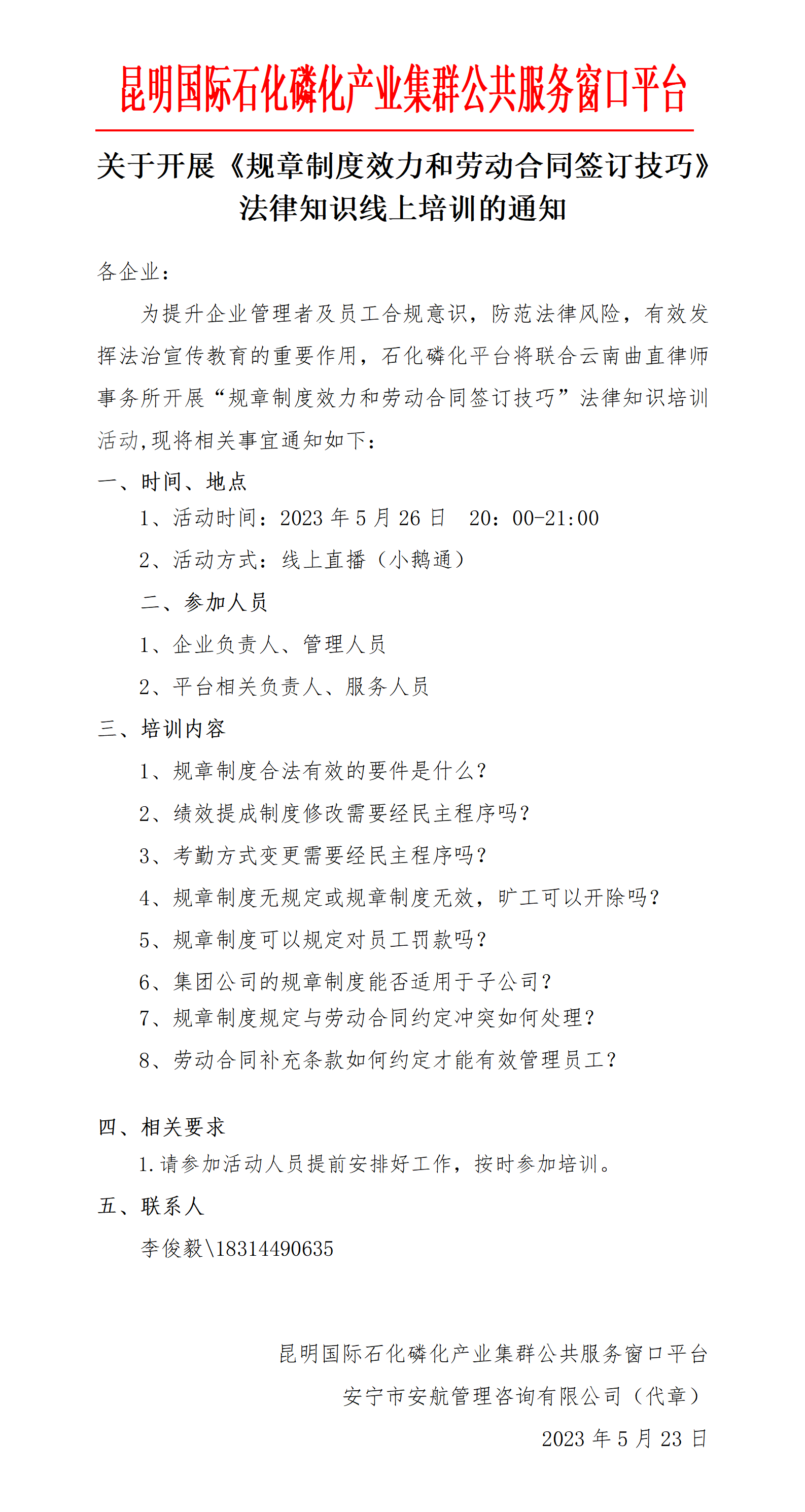 關(guān)于開展《規(guī)章制度效力和勞動(dòng)合同簽訂技巧》 法律知識(shí)線上培訓(xùn)的通知