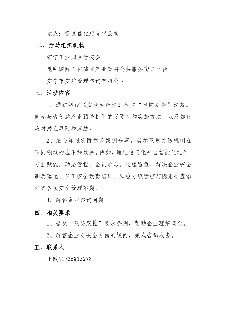 昆明國(guó)際石化磷化平臺(tái)開(kāi)展企業(yè)“雙防雙控”咨詢服務(wù)活動(dòng)通知