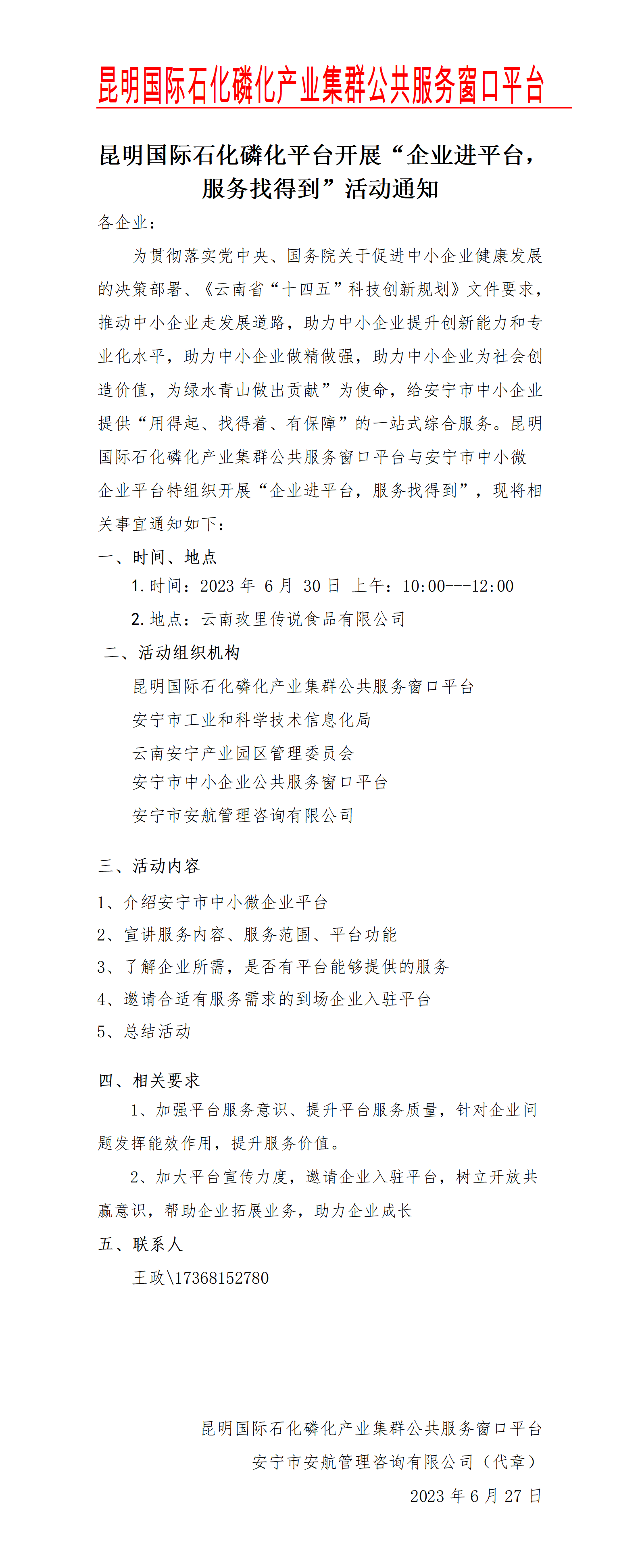 昆明國際石化磷化平臺開展“企業(yè)進平臺,服務找得到”活動通知