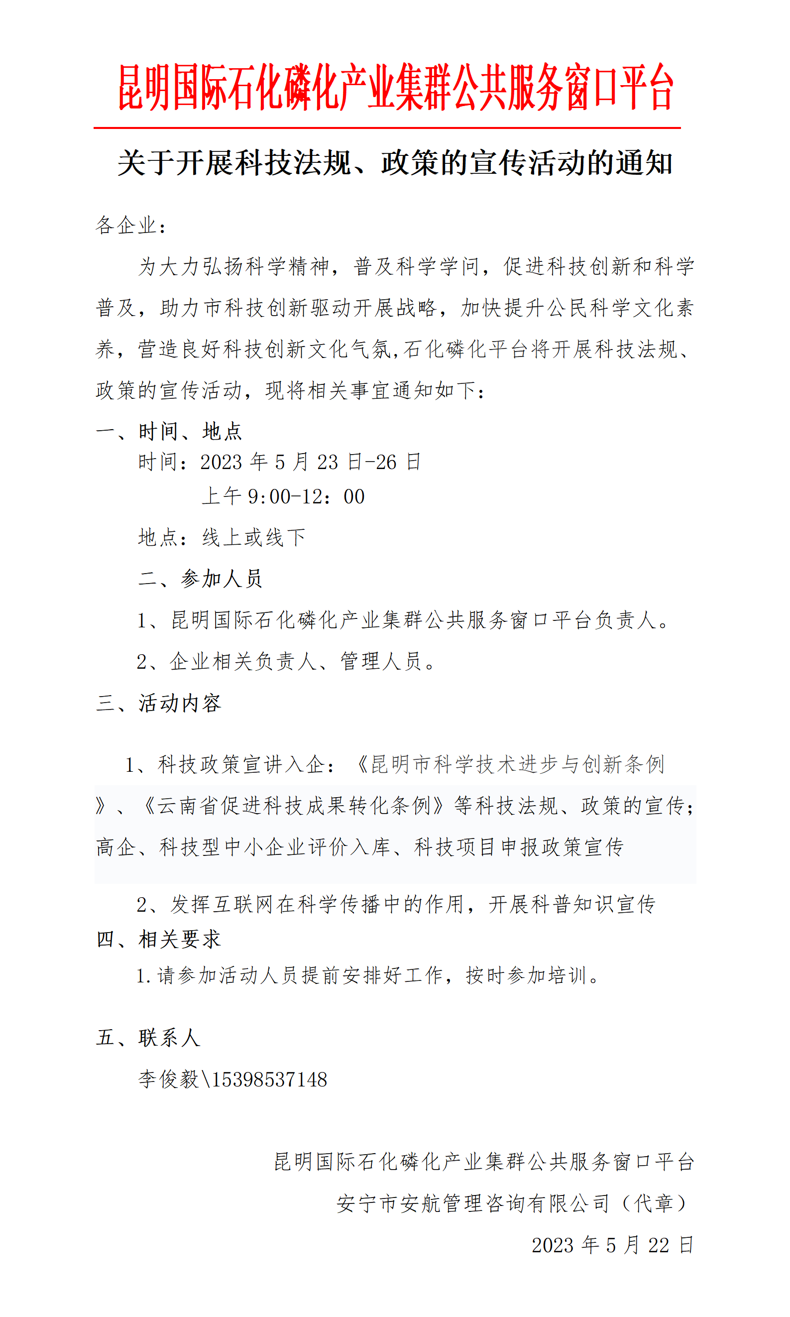 關(guān)于開展科技法規(guī)、政策的宣傳活動(dòng)的通知